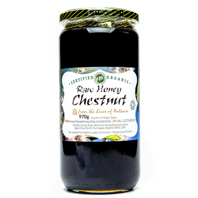 Antonio's Raw Organic Chestnut Honey is a deep and malty-tasting tree honey.