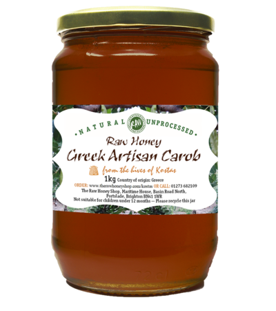 It comes from Carob trees on the Island of Crete. The bees feed on carob trees in the Mediterranean to produce this honey, different from the blossom honeys as it has a more complex and prominent taste.It also crystallises more quickly than some other tree honeys, and it has a lighter colour.