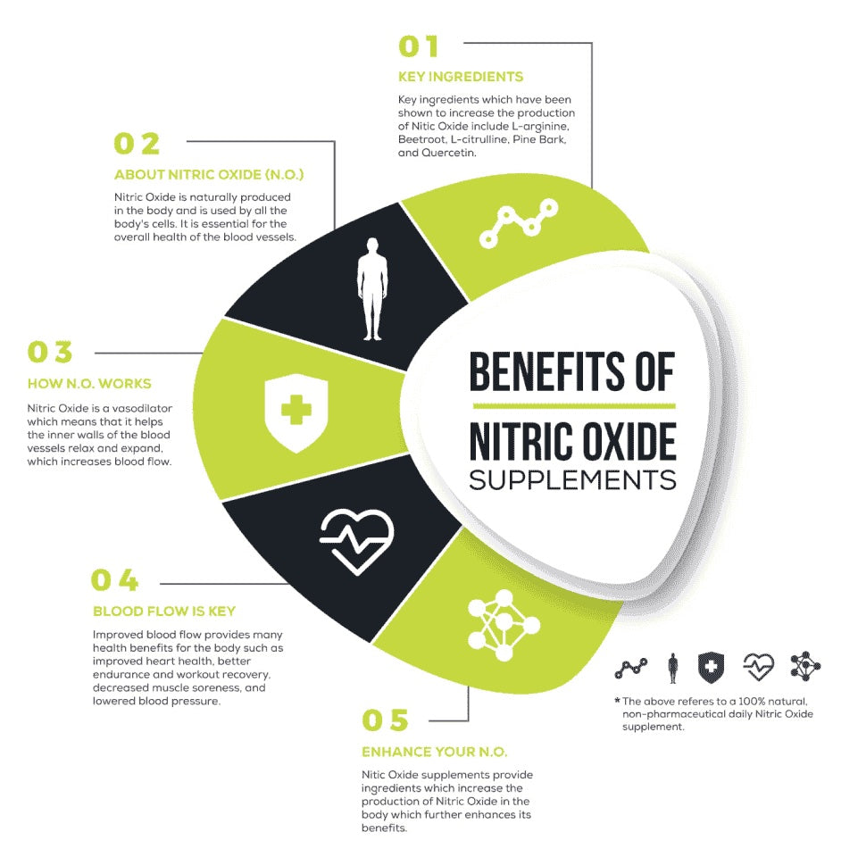 Nitric Oxide stimulates blood vessel flexibility, thereby improving blood viscosity and flow, blood supply, and oxygen levels. This process promotes muscle Fiber repair and improves lactic acid and clearance, leading to quicker recovery.