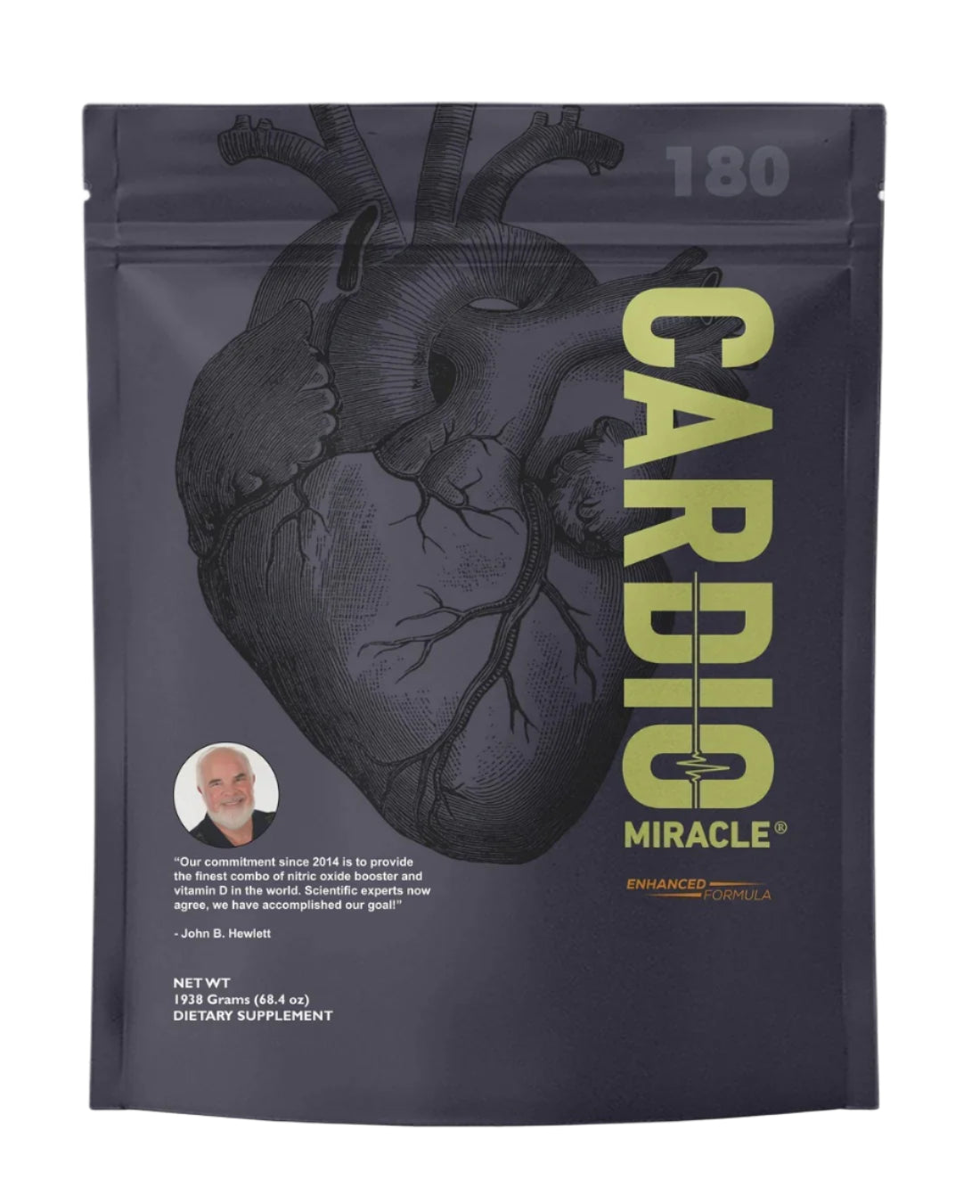 We don’t compromise: Gluten free, 100% natural, organic, non-GMO, made in the USA.Product Details: Cardio Miracle recommended dosage of one scoop, twice daily.Superior bioavailabilityOver 700 natural products that can be isolated from the 50+ ingredients derived whole-food bioavailable nutrients delivered in each and every serving.Made for everyoneYoung, old, and in between, we all need more nutrients and nitric oxide in our bodies.Backed by scienceIn vitro and in silico studies by world-leading scientists and PhDs. ConvenientOne scoop twice a day - it’s that easy!AffordableLess than you'd pay for a cup of coffee.Boosts EnergyNitric oxide regulates and directs muscle function and performance by stimulating vasodilation. This increases blood flow to working muscles, leading to increased oxygen transport, delivery of nutrients to skeletal muscle, and reduction in blood pressure. Bottom line… your energy increases and your physical performance improves.Helps RecoveryNitric Oxide stimulates blood vessel flexibility, thereby improving blood viscosity and flow, blood supply, and oxygen levels. This process promotes muscle Fiber repair and improves lactic acid and clearance, leading to quicker recovery.Supports immunityNitric oxide is recognised as one of the most active and versatile molecules in the immune system. It is powerful toxic defence molecule against infectious organisms. It regulates the functions, growth, and death of many immune and inflammatory cell types (including T lymphocytes, macrophages, mast cells, antigen-presenting cells, NK cells and neutrophils). Hence, it controls autoimmune processes and chronic inflammatory and degenerative diseases.Improves Mental ClarityNitric Oxide is known to relax blood vessels and to increase blood supply to the brain, thus inducing neuronal activity. Nitric Oxide plays a vital role in both the learning process and memory. It modulates the release of neurotransmitters acting as a cellular communicator in brain plasticity and development Testimonials Here’s what some of our friends are saying:I am now going on my 7th - 8th canister of Cardio Miracle (2 scoops a day). I am happier and more energetic than I have ever been. NO depression, NO anxiety, NONE! My energy level is quite honestly ridiculous and I am 59 years old. You care only for us, the best products to help us! My life has changed immeasurably with God and Cardio Miracle on my side. - Jaynie B, GA   I am a new user of Cardio Miracle. I notice that my mood and my energy is a lot better since day one. - Randy T, MD   John Hewlett is amazing and got me interested in trying Cardio Miracle. For me personally, I noticed I have more energy and oxygen. When I heard about Cardio Miracle I thought to myself, "but I'm not getting nitric oxide in my system." My dad is on it too and says he feels better, and he has all kinds of health problems. I am definitely hooked on this product, I have to admit. Please don't ever stop making Cardio Miracle! - Ronald P.I am lucky to be alive. I had to close my business as a result of my heart issues and have tried many pricey supplements over the years. I think there is something about Cardio Miracle being a drink, rather than hard pills, because it works well for me. I noticed a difference in my energy level and my breathing within a couple weeks of taking Cardio Miracle. - Dee P   I've been taking Cardio Miracle twice a day for almost one month. After 3 days, my ankles stopped swelling at night. After a couple of weeks, my sciatica disappeared. I've also lost 6 lbs and no longer crave sweets. Recommending this to my family and friends! - Lisa H, TX   Thanks for sharing Cardio Miracle with us. We take it every day. We're so thankful for the benefits and reassurance of Cardio Miracle, especially after Scott's heart attack in 2018. - Scott and Janece L, *These statements have not been evaluated by the Food and Drug Administration. This product is not intended to diagnose, treat, cure or prevent any disease. Information on this site is provided for informational purposes only. It is not meant to substitute for medical advice from your physician or other medical professional. You should not use the information contained herein for diagnosing or treating a health problem or disease, or prescribing any medication. Carefully read all product documentation. If you have or suspect that you have a medical problem, promptly contact your regular health care provider.