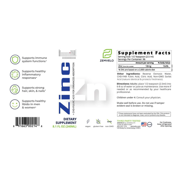 Zemvelo - ZINC 240ml - 8floz (previously Mineralife)