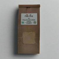 Each tea bag is chemical- free and made with oxygen bleached paper. Tea bag contains Wild British Chaga, Organic Nettle, Horsetail.